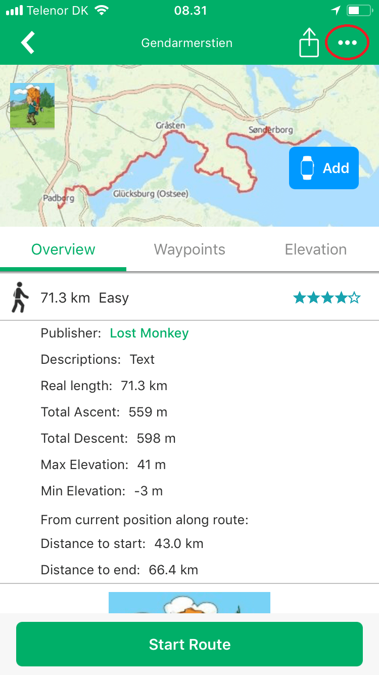For at kunne bruge den skal du selvfølgelig downloade, installere app’en, registrere dig som bruger og have downloadet en rute – det forudsætter jeg at du har gjort, ellers kan du se hvordan man gør det i første del af guiden her.